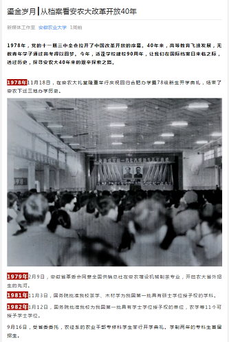 6月8日,安徽农业大学官方微信平台推出一期“从档案看安农大改革开放40年” ,图文并茂地介绍了安农大改革开放以来40年的求实创新之路。