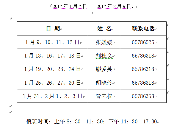 档案馆2017年寒假值班表