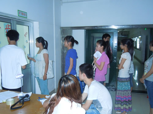 广大同学热情高涨、积极参与。本次招聘共有99名同学报名,74人参加初试。6月20日晚,由档案馆、团委等单位人员及有关专家组成的评委团,对入围同学进行面试。经自我介绍,普通话测试、现场提问和综合考核等环节,初步确定人文社会科学学院09级对外汉语专业杨莲婷等38名同学为我校校史馆解说团成员。