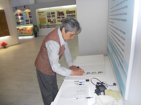 5月10下午,省老年科技工作者协会在钱凌会长的率领下,来我校参观校展览馆。钱凌会长一行了解了安农83年励精图治、上下求索的历史以及辉煌业绩,尤其是近年来科学研究的成就。在参观结束后,钱凌会长欣然题字留念。