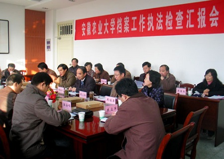 周继萍馆长从四个方面汇报了我校档案工作执法情况:(一)档案领导体制健全,成立了档案馆和档案工作委员会;(二)实行各类档案的集中统一管理,档案管理机制进一步健全;(三)增强责任意识,确保档案资源的安全;(四)深入开发档案信息资源,为学校中心工作服务。