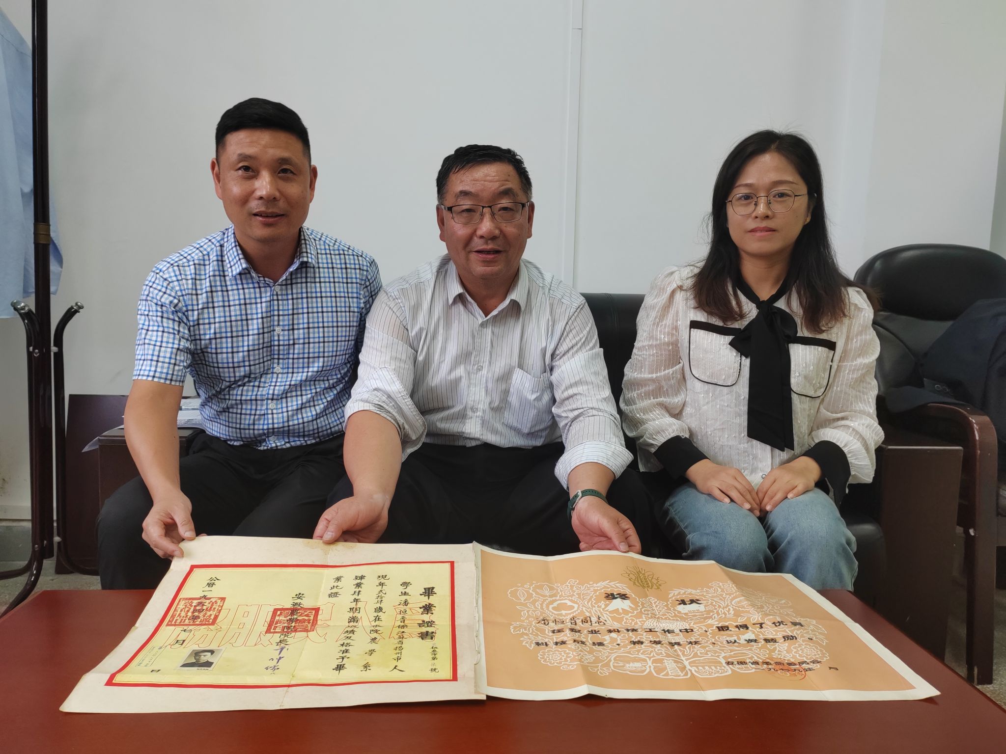 10月10日,潘恒晋副教授家属潘健向档案馆捐赠了珍贵历史档案,包括1954年安徽农学院的毕业证书和1979年由当时安徽省革命委员会颁发的奖状等。