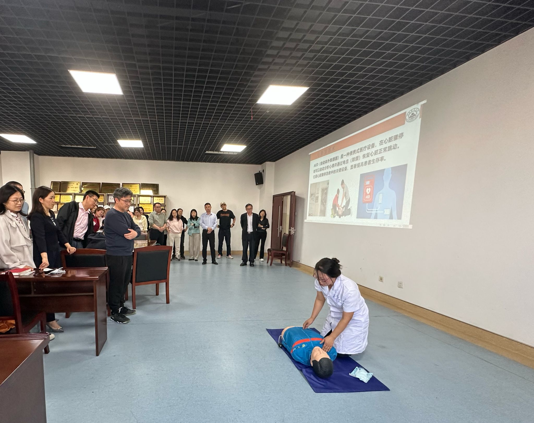 会议特邀校医院院长宋旻和蒋红娟医生开展应急急救知识培训。宋院长详细讲解了心肺复苏的基本原理、操作步骤、注意事项以及AED(自动体外除颤器)的使用方法。蒋红娟现场进行实操演习,让全体馆员更直观的体验心肺复苏应急急救的全过程。通过本次培训,馆员不仅加深了对心肺复苏的了解,初步掌握了应急急救技能,还学会了如何在紧急情况下保持冷静、迅速判断并做出规范、正确的急救决策,提高了全体馆员应急处置能力。(文图/编辑/吴兰婷 初审/刘社文 审核/刘加华)