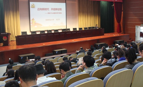 离退休工作处党总支等党组织邀请我校出席党的十九大代表、茶与食品科技学院院长张正竹教授,在图书馆第一报告厅作了一场题为“迈向新时代开启新征程”的报告,我校各民主党派成员、无党派人士聆听了本次报告。