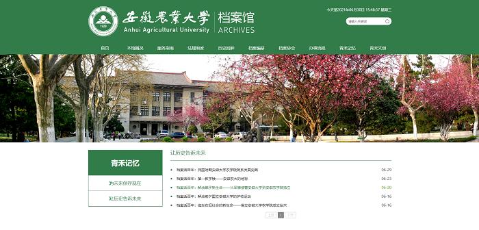 档案馆牢牢把握“档案工作姓党”的政治属性, 在红色资源开发利用上出实招,精准选题、超前谋划,努力建设“青禾文创”“青禾记忆”栏目,打造“校史育人”文化品牌。对馆藏历史文书档案进行整理和数字化,在服务党史学习教育中贡献档案力量。立足自身职能,传承红色文化,组织撰写系列文章:诞生在旧社会的新生命——省立安徽大学农学院成立始末、解放前夕国立安徽大学护校运动、解放赋予新生命——从军事接管安徽大学到安徽农学院独立、民国时期安徽大学农学院院系的设置与发展、第一教学楼——安徽农大的地标,全面宣传档案里的红色故事、普及校史知识,大力营造庆祝党的百年华诞的浓厚氛围。