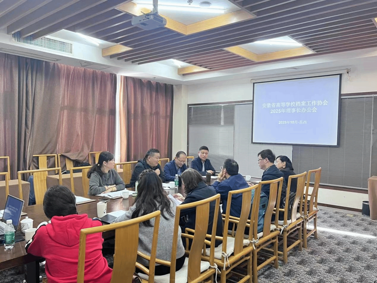 10月23日至24日,安徽省高等学校档案工作协会2025年第二次理事长办公会暨支委会在岳西县召开。协会理事长、副理事长、秘书长、监事长、功能型党支部支委参加了会议。会议由马仁杰理事长主持。