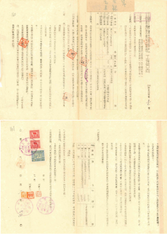 水塔由华东建筑工程局建筑设计公司设计(图2),安徽省水利厅对水塔基地进行实地勘探,安徽省人民政府建筑工程局第二工程处负责工程监理,安徽省国营新生总厂承建施工。1954年2月24日,安徽大学建校委员会与安徽省国营新生总厂签订工程合同(图3);同日水塔工程开工,经1个多月施工,于1954年3月31日顺利竣工。